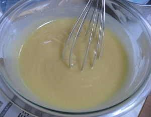 泡立て器で 軽く一周かき混ぜて モールドに流し入れました!