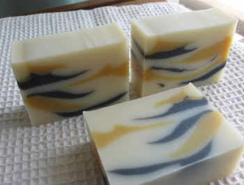 この石けんのマーブルは 地のタネを少し流し入れておいて